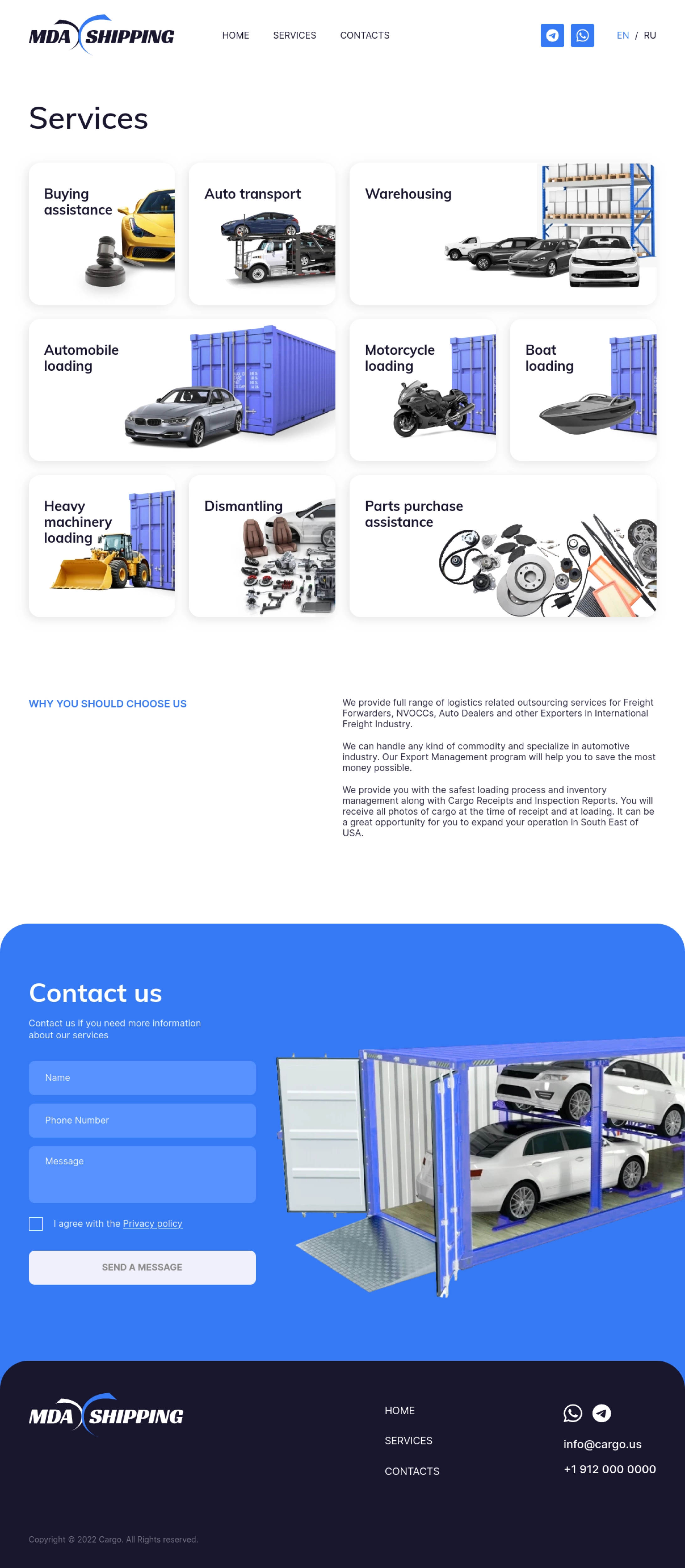Wordpress website for a company engaged in the delivery of goods from abroad.