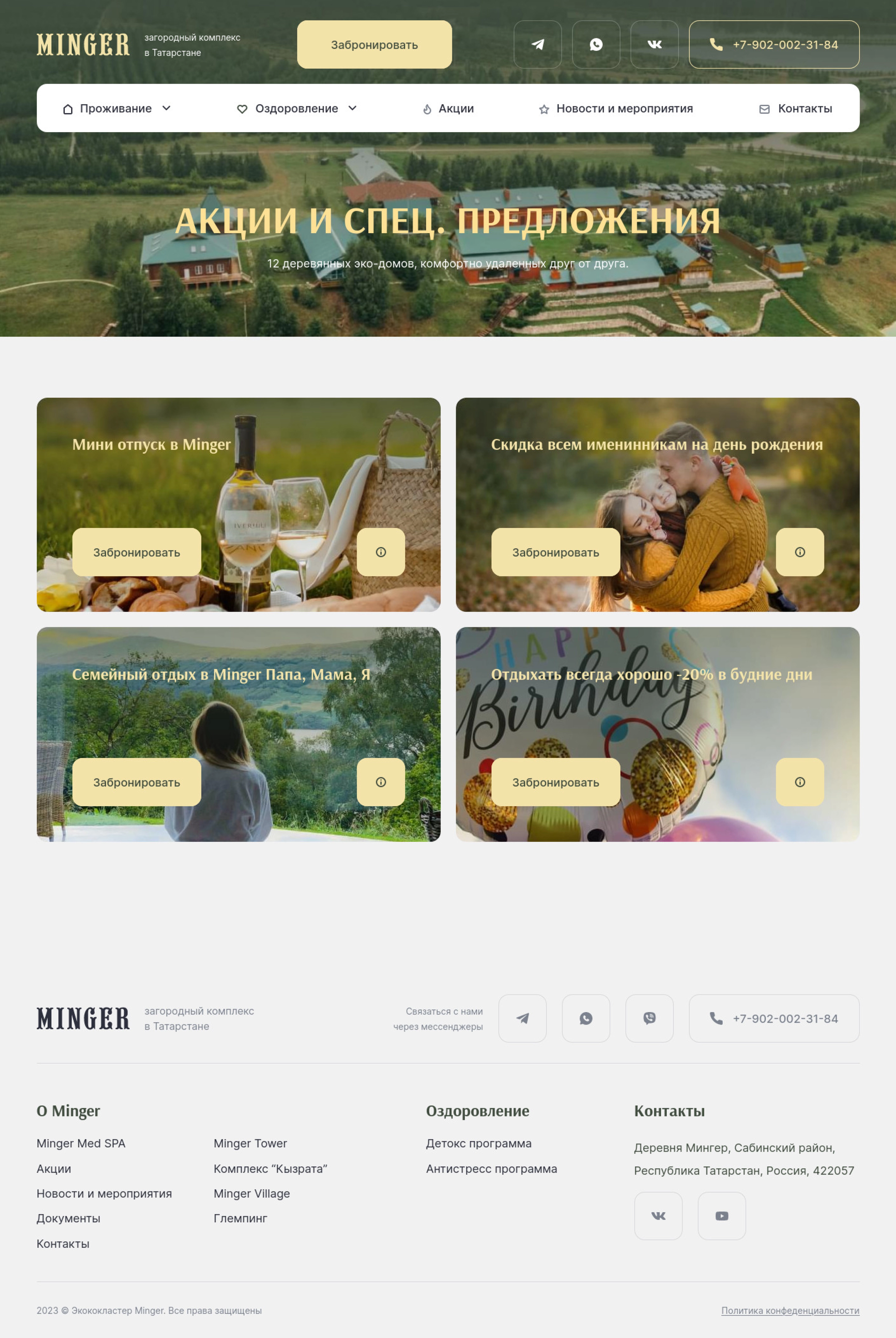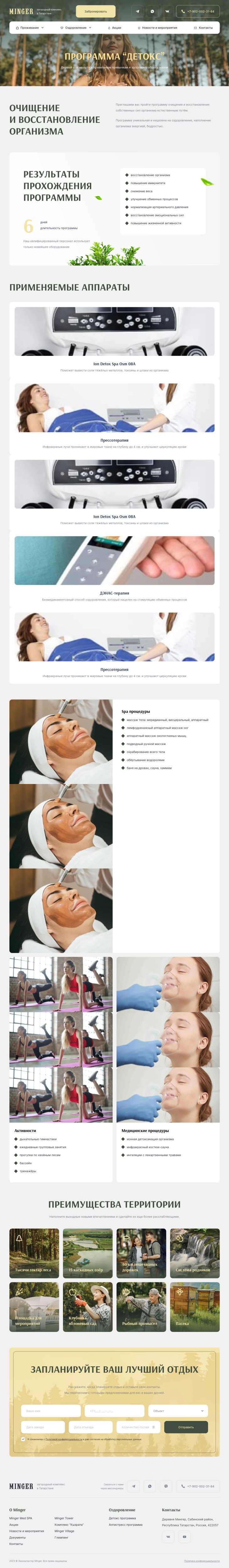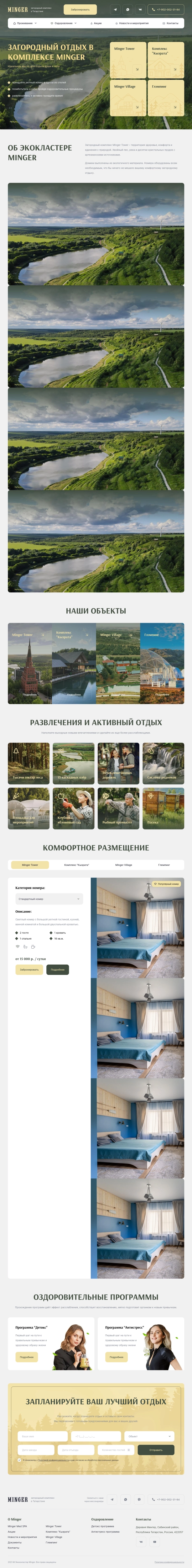 Website layout for a country health resort, with landing on Wordpress.